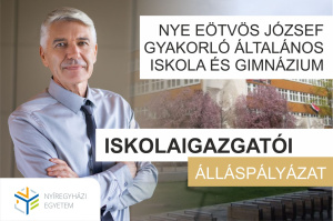 A Nyíregyházi Egyetem pályázatot hirdet az Eötvös József Gyakorló Általános Iskola és Gimnáziumába történelem vagy történelem-bármely szakos gimnáziumi tanár munkakör betöltésére.