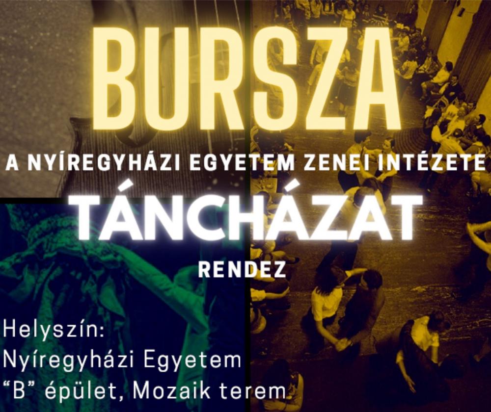 A Nyíregyházi Egyetem Zenei Intézete Bursza Táncházat rendez. Helyszín: Nyíregyházi Egyetem "B" épület, Mozaik terem