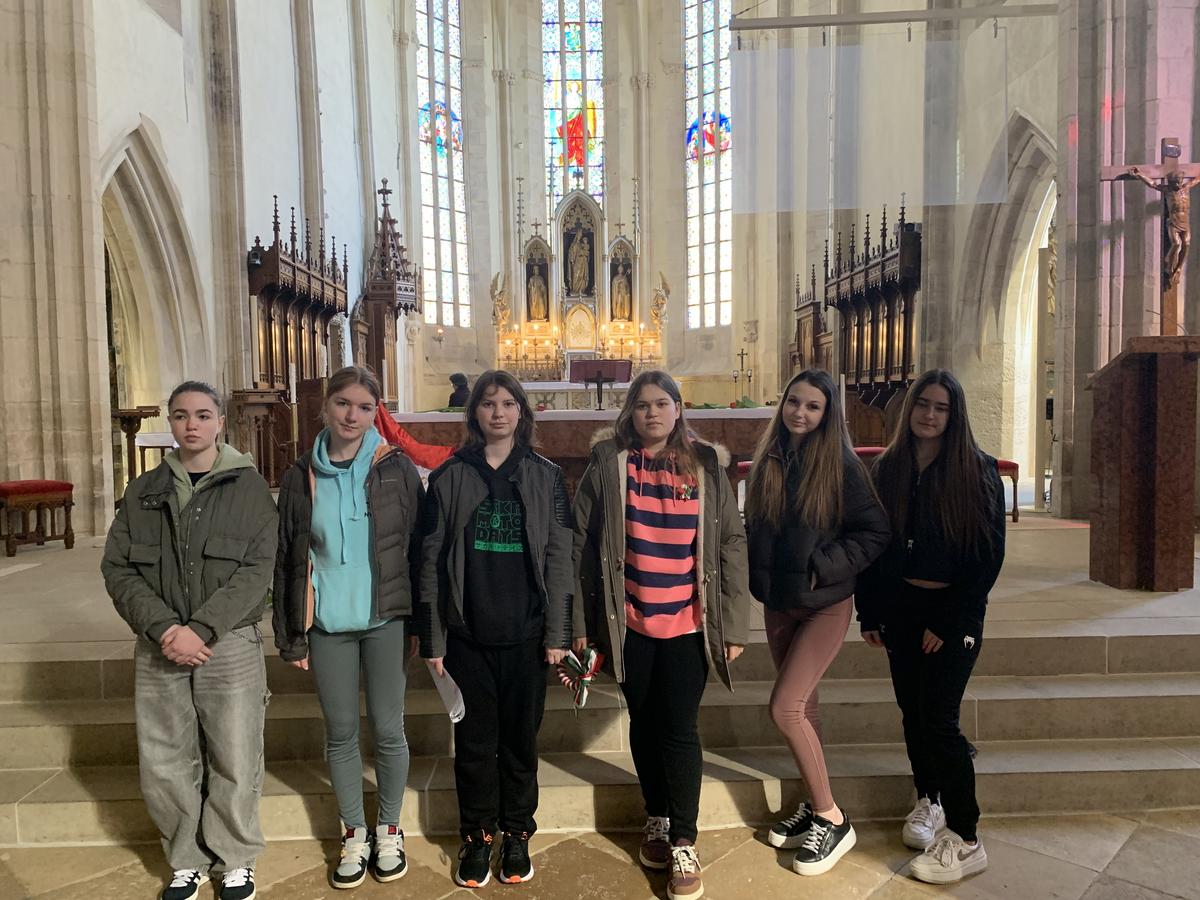 5. fotó: A diákok a Szent Mihály székesegyház főoltára előtt