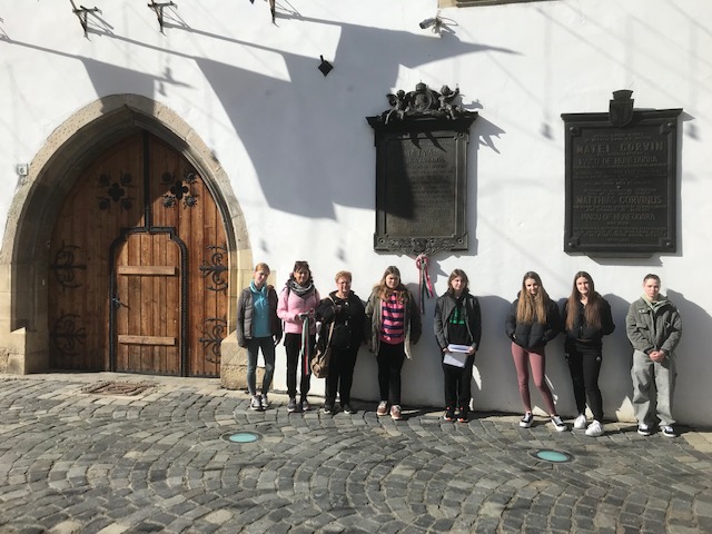 6. fotó: Az Eötvös – csoport Hunyadi Mátyás kolozsvári szülőháza előtt