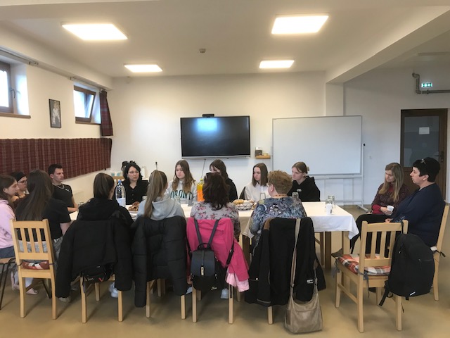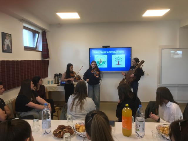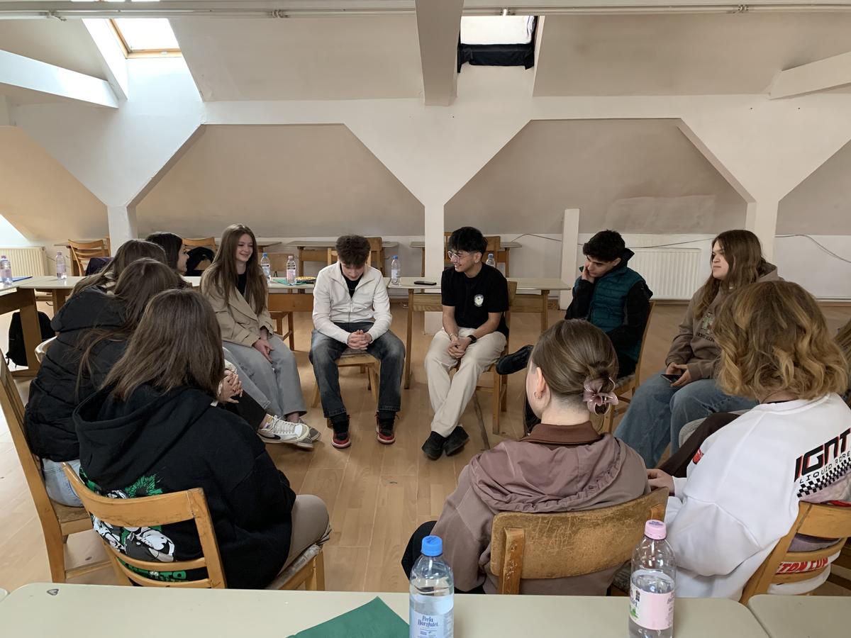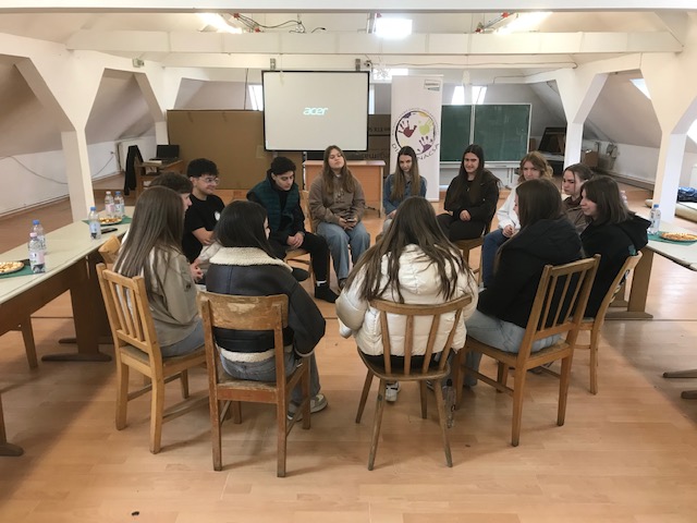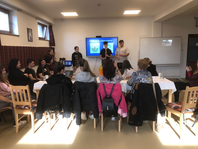 9. fotó: A két középiskola diákönkormányzati képviselőinek baráti beszélgetése