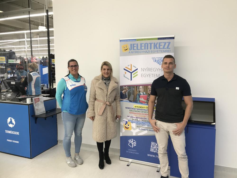 A Nyíregyházi Egyetem együttműködik a nyíregyházi Decathlon Áruházzal, akik az intézmény felvételi kampányát is támogatják. Februárban elhelyezésre került az áruházban két roll up tábla, melyen a meghirdetett képzésekről is tájékozódhatnak a vásárlók, melyeket Dr. Vajda Ildikó, a Testnevelési és Sporttudományi Intézet igazgatója adott át Mucsi Gergelynek, a nyíregyházi DECATHLON áruház igazgatójának.