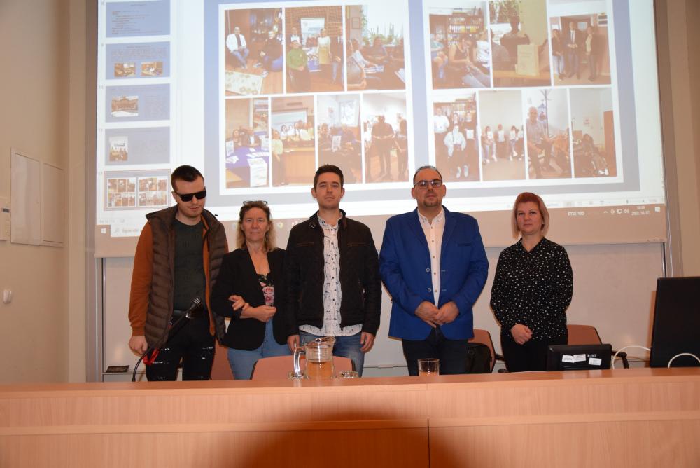 Október elején a Nyíregyházi Egyetem Mentálhigiénés és Esélyegyenlőségi Központja szakmai és tudománynépszerűsítő előadással, érzékenyítő foglalkozással is csatlakozott az Országos Könyvtári Napok programjaihoz az "ESÉLY-EGYENLŐSÉG-KÖNYVTÁR" témakörben. Körei László központvezető a "Fiatalok esélyei a Nyíregyházi Egyetemen" címmel tartotta meg előadását a Móricz Zsigmond Megyei és Városi Könyvtár konferenciatermében, melyhez az intézmény képviseletében Molnár Rita és Lutter Krisztina személyi segítők, valamint Horváth Dominik önkéntes kortárs segítő hallgató és Lőrincz Richárd elsőéves speciális szükségletű, vak hallgatónk is csatlakozott.