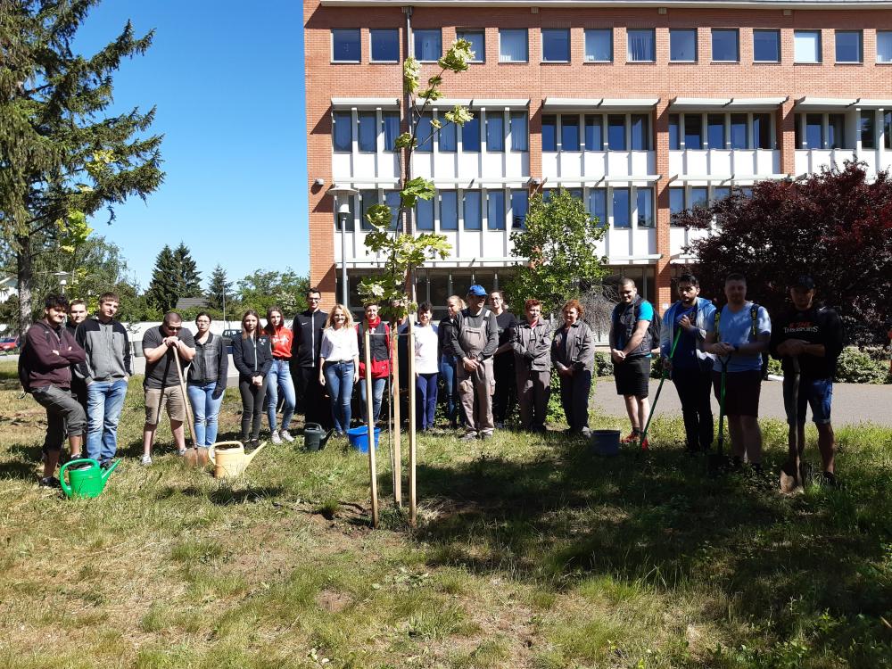 A madarak és fák napja, valamint a méhek világnapja alkalmából 2022. május 18-án egyetemünk hallgatói és oktatói a Zöld Akciócsoporttal közösen az Észak-Alföldi Környezetgazdálkodási Nonprofit Kft. felajánlásával két juhar csemetét ültetett az egyetem C épülete előtt. Az eseménnyel a „10 millió fa” elnevezésű mozgalomhoz is csatlakoztunk, hozzájárulva ezáltal hazánk zöldebbé tételéhez.