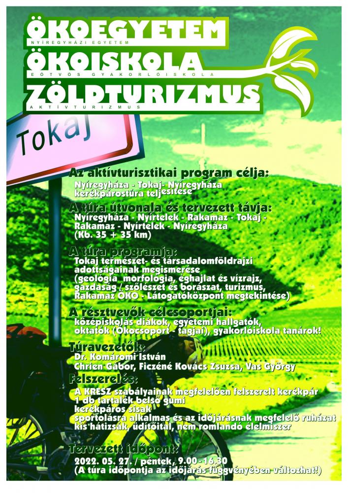 A Nyíregyházi Egyetem Ökoegyetem Csoportja, Az Eötvös Gyakorlóiskola Ökoiskolája Tokaj-Nyíregyháza kerékpárostúrát szervez. Az aktívturisztikai program célja: Nyíregyháza–Tokaj–Nyíregyháza kerékpárostúra teljesítése. A túra útvonala és tervezett távja: