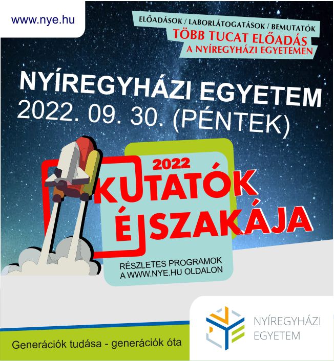 NYÍREGYHÁZI EGYETEM / A KUTATÓK ÉJSZAKÁJA TERVEZETT PROGRAMJAI / (2022. SZEPTEMBER 30. / PÉNTEK)