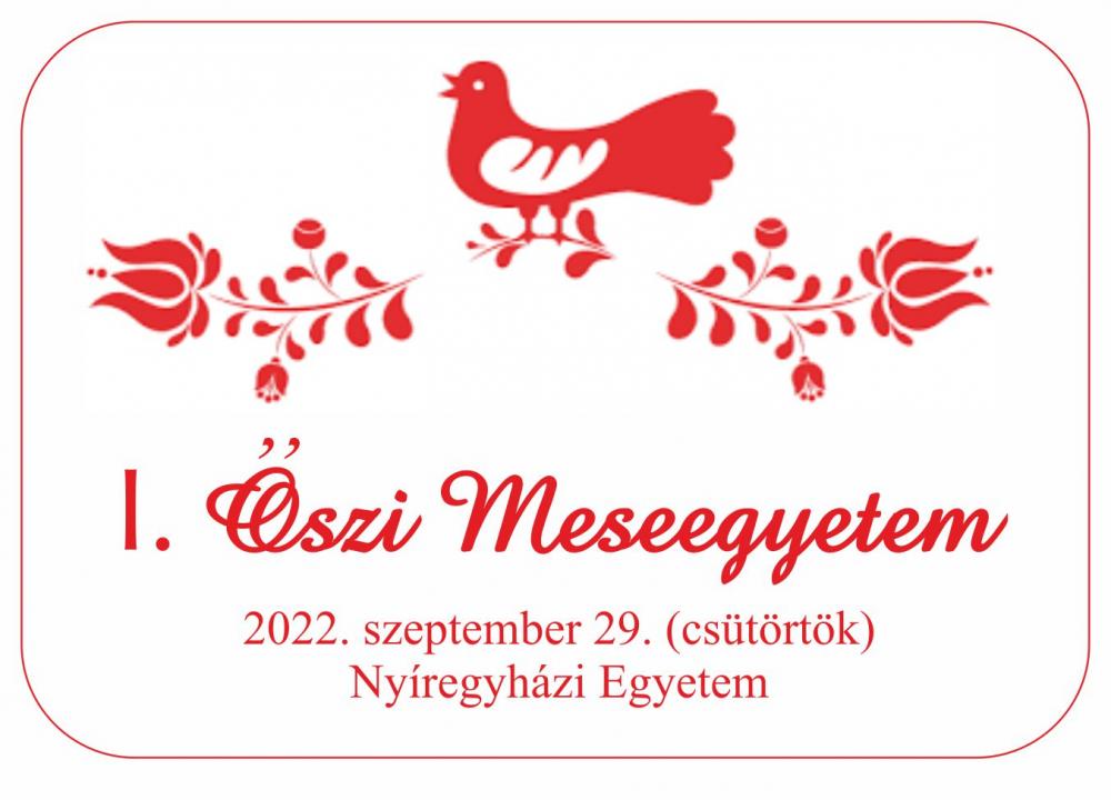 A Magyar Népmeséért Alapítvány és a Nyíregyházi Egyetem Óvó- és Tanítóképző Intézete szeretettel hív minden kedves érdeklődőt az I. Őszi Meseegyetem című rendezvényére. Az esemény időpontja: 2022. szeptember 29. (csütörtök), helyszíne a Nyíregyházi Egyetem, D/7. körelőadója (Nyíregyháza, Sóstói u. 31/b). A rendezvény célja a magyar népmese és műmese gazdag és egyedülálló világának őrzése, ápolása, népszerűsítése és társadalmi elfogadottságának erősítése - fogalmazták meg a program fő gondolatát a szervezők.