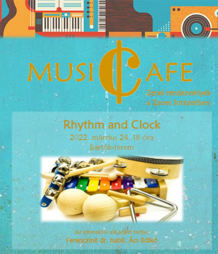 Rhythm and Clock címmel interaktív zenei előadást tart a Nyíregyházi Egyetem Bartók-termében (B épület, Zenei Intézet) Ferencziné dr. habil. Ács Ildikó, intézetigazgató, a MusiCafé (zenei rendezvények a Zenei Intézetben) programsorozat következő rendezvényeként. Az előadásra 2022. március 24-én (csütörtökön) 18:00 órától kerül sor. Szeretettel látják az egyetemi hallgatókat, családokat, gyerekeket, a zene iránt érdeklődőket. A belépés díjtalan.