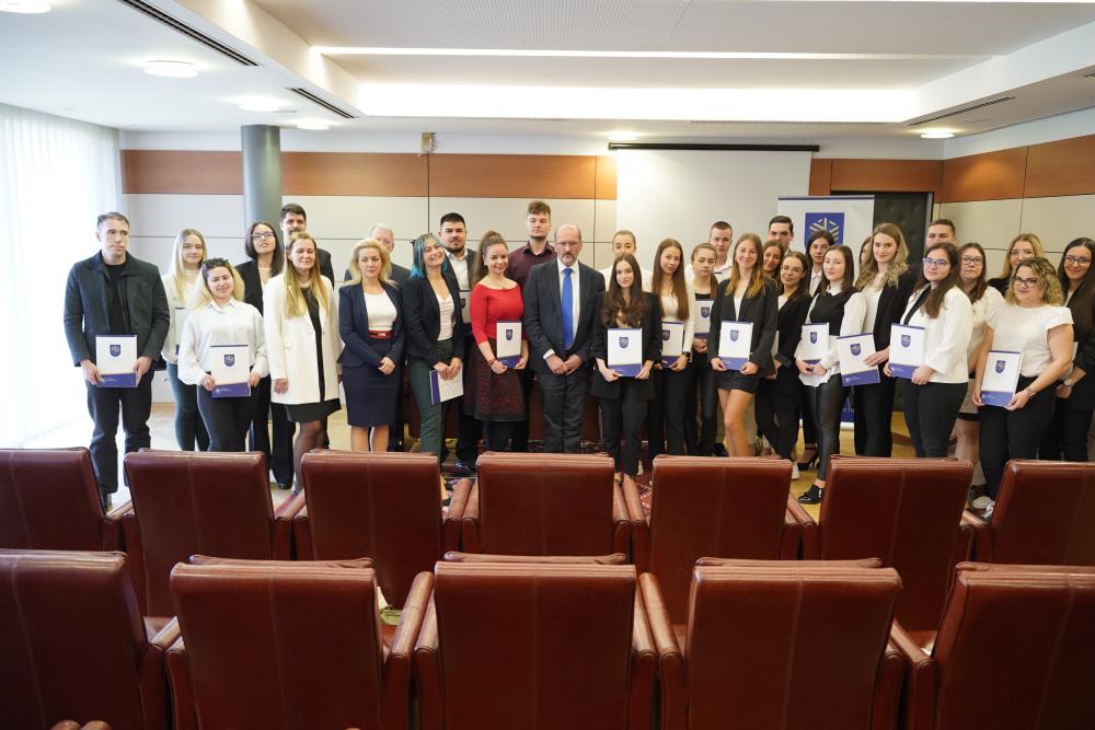 – A Magyar Nemzeti Bank tovább erősíti a hallgatóinkban azt, hogy igenis, érdemes tanulni. Az ösztöndíjnak köszönhetően a diákoknak nem kell feltétlenül munkát vállalniuk az egyetemi éveik alatt, így több idejük és energiájuk marad a tanulásra, az egyetemi közösségi feladatok ellátására, kutatásra vagy rendezvényszervezésre – fogalmazott köszöntőjében Barabásné dr. Kárpáti Dóra, a Nyíregyházi Egyetem Gazdálkodástudományi Intézetének intézetigazgatója. Dr. Szabó György rektor köszönetet mondott a pénzintézetnek, illetve gratulált a pályázaton nyertes hallgatóknak. Kiemelte, a jegybank sokat áldoz a társadalmi felelősségvállalás oltárán, a különféle ösztöndíjak mellett kutatás-fejlesztési támogatást is biztosít a Nyíregyházi Egyetemnek.