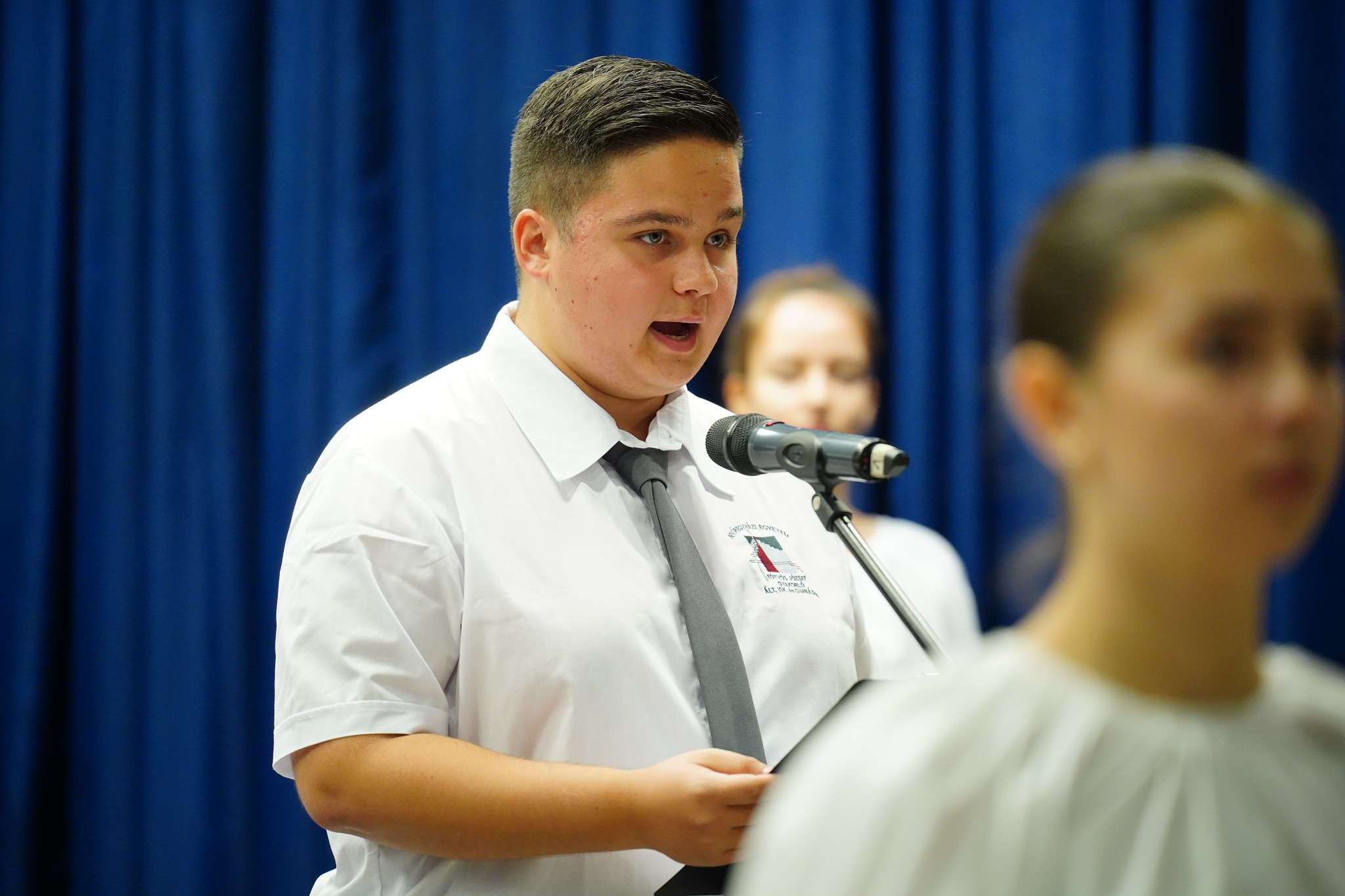 Az ünnepi beszédet Dr. Szoboszlay György, főiskolai docens, a Történettudományi és Filozófia Intézet oktatója mondta, aki Nagy Gáspár Kossuth- és József Attila-díjas költő munkásságán keresztül mutatta be az 1956-os forradalom erkölcsi és történelmi üzenetét. A történész többek között azt hangsúlyozta: „1956 októberében egyértelmű, félreérthetetlen üzenetet fogalmaztak meg a magyar fiatalok…: Az igazságért vívott harc bár meglehet, embert próbáló feladat, de egyszer valakinek el kell végezni ezt is, nem lehet egész életünkön át magunk előtt tologatni.”