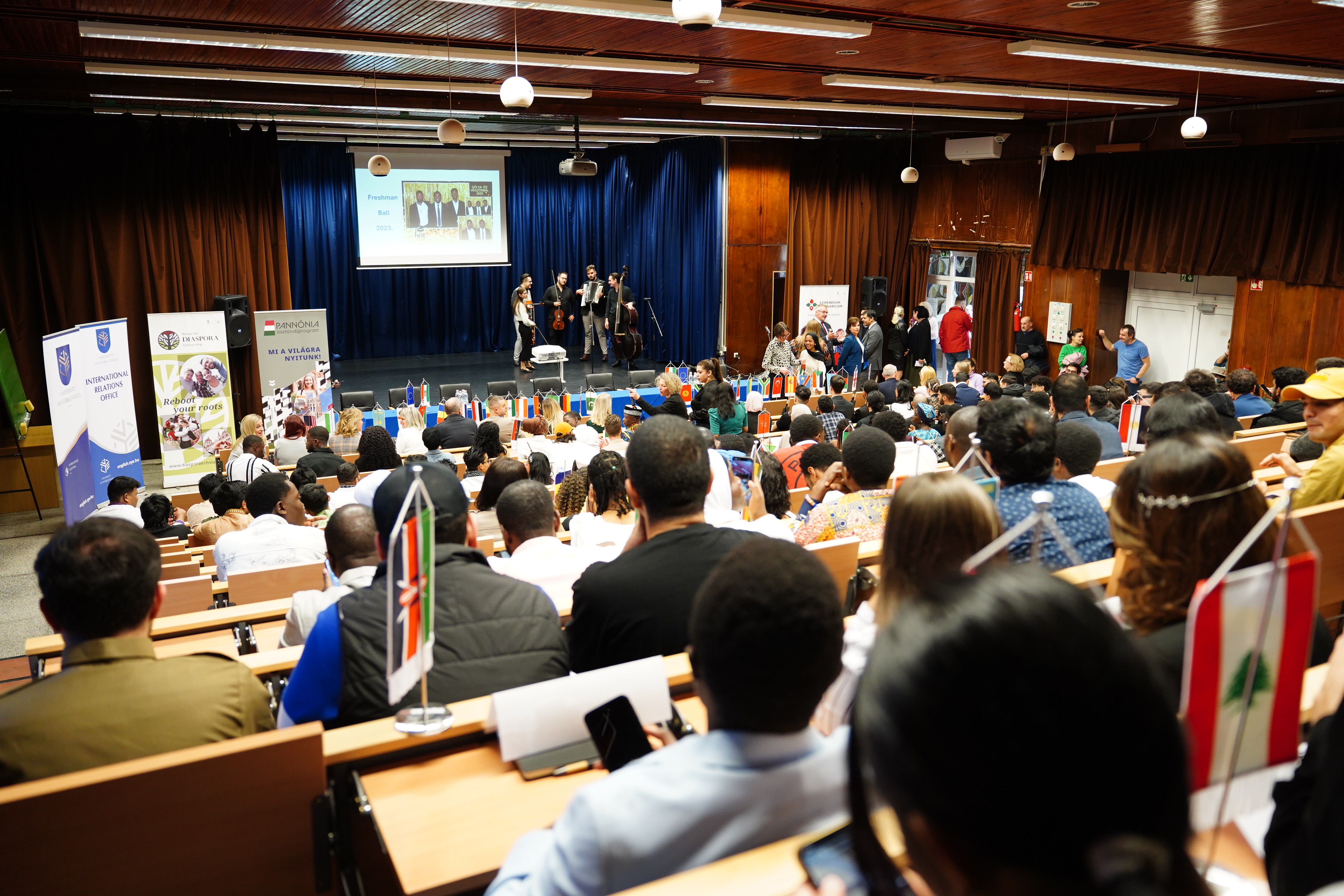 Már hagyomány, hogy a Zenei Intézet diákjai tradicionális magyar dallamokkal nyitják meg a Nyíregyházi Egyetem nemzetközi hallgatóinak köszöntő ünnepségét. A B épület Nagyelőadója ezúttal is teltházas eseménynek adott otthont: a világ öt kontinenséről érkezett diákok közül sokan már csak a lépcsőn találtak helyet.