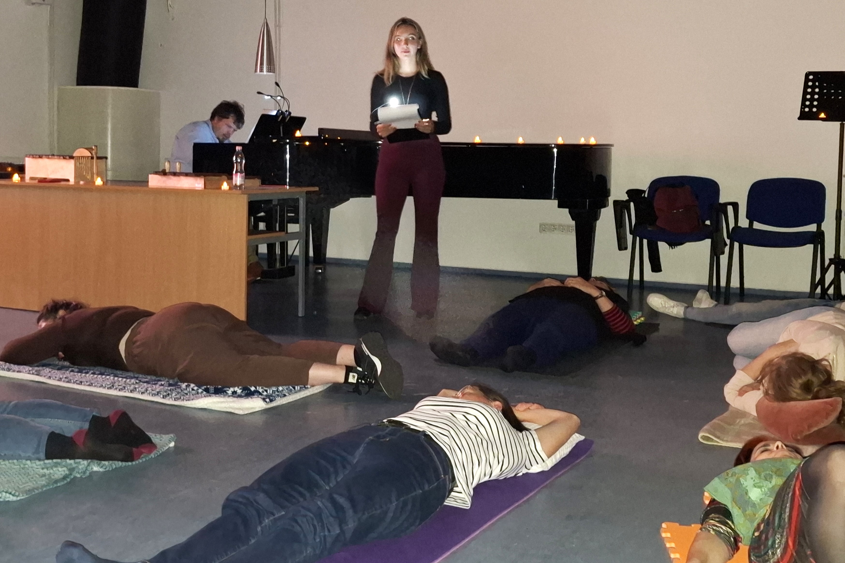 A műsort Bugarin-Horváth Luca és Czuczor Ramóna ének-zene–magyar szakos hallgatók, valamint tanáruk, Ferencziné dr. Ács Ildikó állították össze és adták elő, Mike Ádám zongorakíséretével. A program célja az volt, hogy a résztvevők a zene segítségével kicsit megálljanak, elengedjék a feszültséget, és megéljék a novemberi elcsendesülés időszakát.