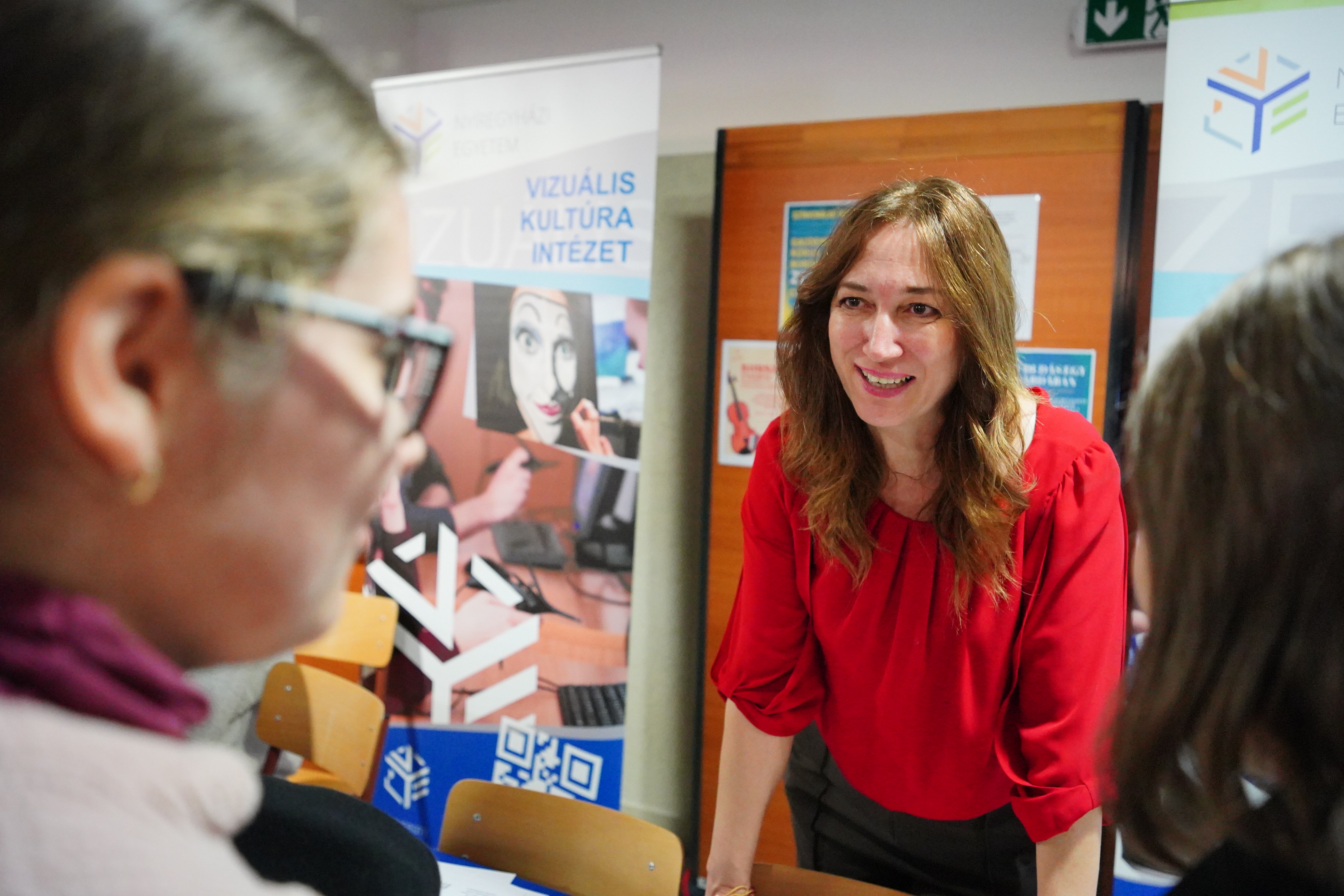 Az intézmény képzési struktúráját, a felvételi eljárás legfontosabb tudnivalóit, a tehetséggondozó és ösztöndíjprogramokat Dr. Vajda Ildikó oktatási elnökhelyettes mutatta be az érdeklődőknek. „A gyakorlatorientált oktatás, a nemzetközi tapasztalatszerzés és a hallgatói élet támogatása kiemelt cél a Nyíregyházi Egyetemen. Intézményünkben modern tudás, élmények és közösség várja a hallgatókat” – fogalmazott Dr. Vajda Ildikó.