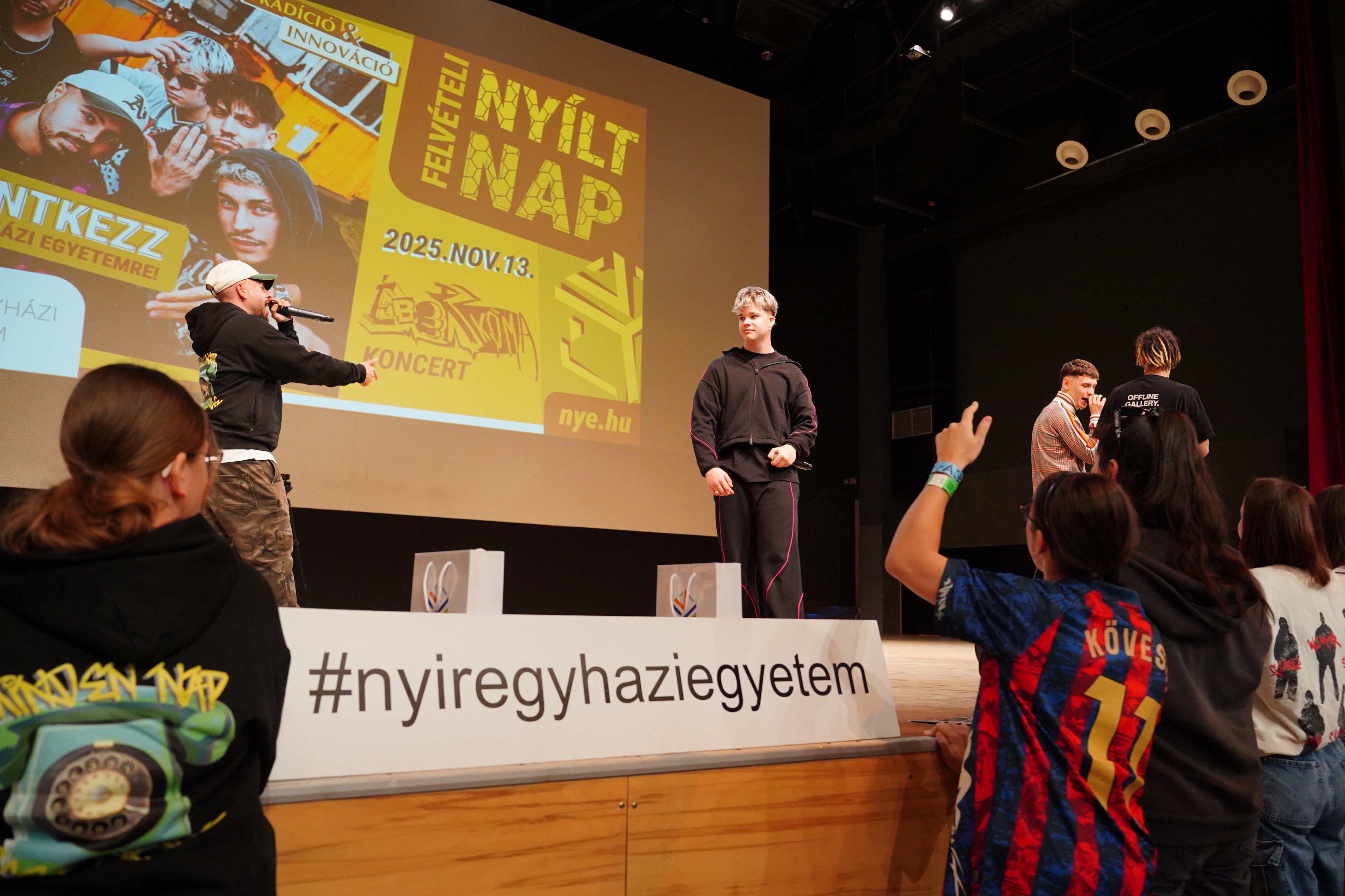 Több száz középiskolás érkezett 2025. november 13-án a Nyíregyházi Egyetem Felvételi Nyílt Napjára, ahol az érdeklődők nemcsak a legújabb szakokról, ösztöndíjlehetőségekről és tehetséggondozó programokról tájékozódhattak, hanem megtapasztalhatták az egyetemi élet pezsgő hangulatát is. A napot Dr. Kovács Zoltán elnöki feladatok ellátásával megbízott elnökhelyettes nyitotta meg, majd az Éberkóma koncertje koronázta meg a rendezvényt.