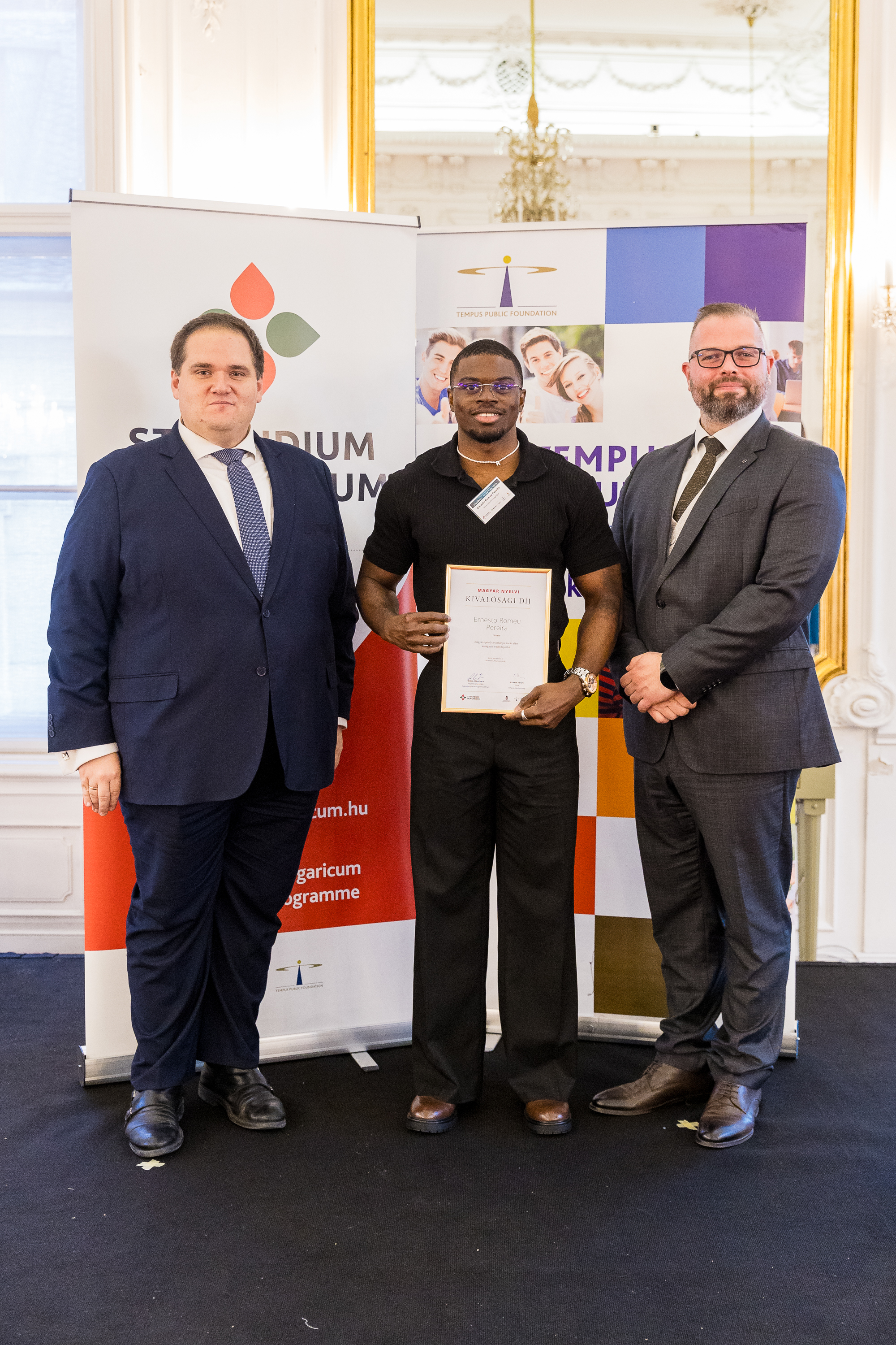 A Stipendium Hungaricum Ösztöndíjprogram legkiválóbb hallgatóit ismerték el 2025. november 5-én Budapesten. A Festetics-palotában tartott ünnepségen a Nyíregyházi Egyetem három külföldi hallgatója – Prynces Therese Lacatan Lacdang a Fülöp-szigetekről, valamint az angolai Ernesto Romeu Pereira és Luis Kinjuka Lisboa – vehetett át Hallgatói Kiválósági Díjat. Mindannyian kiemelkedő tanulmányi teljesítményükkel, elhivatottságukkal és közösségi szerepvállalásukkal érdemelték ki az elismerést.