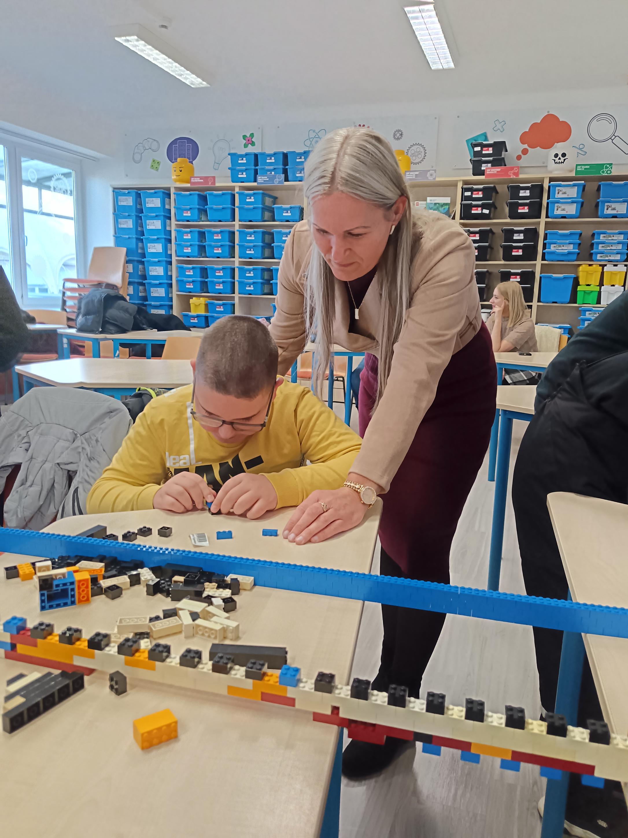 A programot Karakóné Mihalovics Ágnes, a Göllesz Viktor Általános Iskola, Szakiskola és EGYMI gyógypedagógusa kíséri és készíti elő. Saját osztályában is LEGO®-módszerrel tanítja a matematikát, emellett LEGO® szakkört is indított az iskolában. „Azt keressük, kit hogyan tudunk bevonni az együttműködésbe. Van olyan kisfiú, aki korábban nem nagyon beszélt, mostanra már színeket nevez meg, és sokkal aktívabban vesz részt a játékokban. Ezek nekünk is nagyon nagy eredmények” – mondta. A pedagógus szerint már az is óriási fejlődési lehetőség, hogy a gyerekek együtt utaznak, jegyet vesznek, szabályokat követnek. A stúdióban pedig olyan környezetben próbálhatják ki magukat, ahol az újdonságok nem ijesztőek, hanem kíváncsivá teszik őket. „A LEGO® módszer azért működik jól, mert játékosan, több érzékszerven keresztül segít bevonni a gyerekeket – így könnyebben kapcsolódnak, tovább figyelnek, és szívesebben kommunikálnak”- fogalmazott a gyógypedagógus, aki mentortanárként egyetemi hallgatókkal is megosztja az új módszertani lehetőségeket.