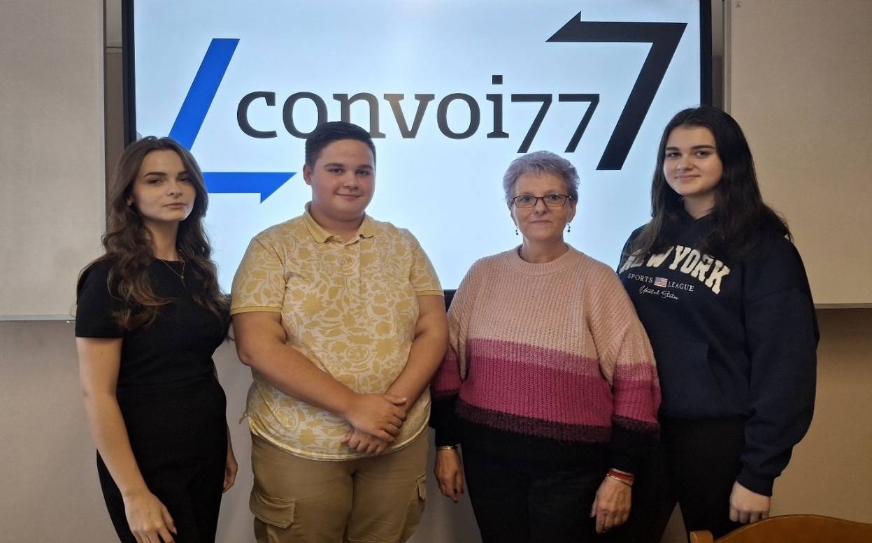 Fehér Ildikó, az Eötvös Gyakorló Iskola tanára és a 10.B osztály tanulói: Baranyi Patrik, Nagy Jázmin Emma, Tasi Tímea