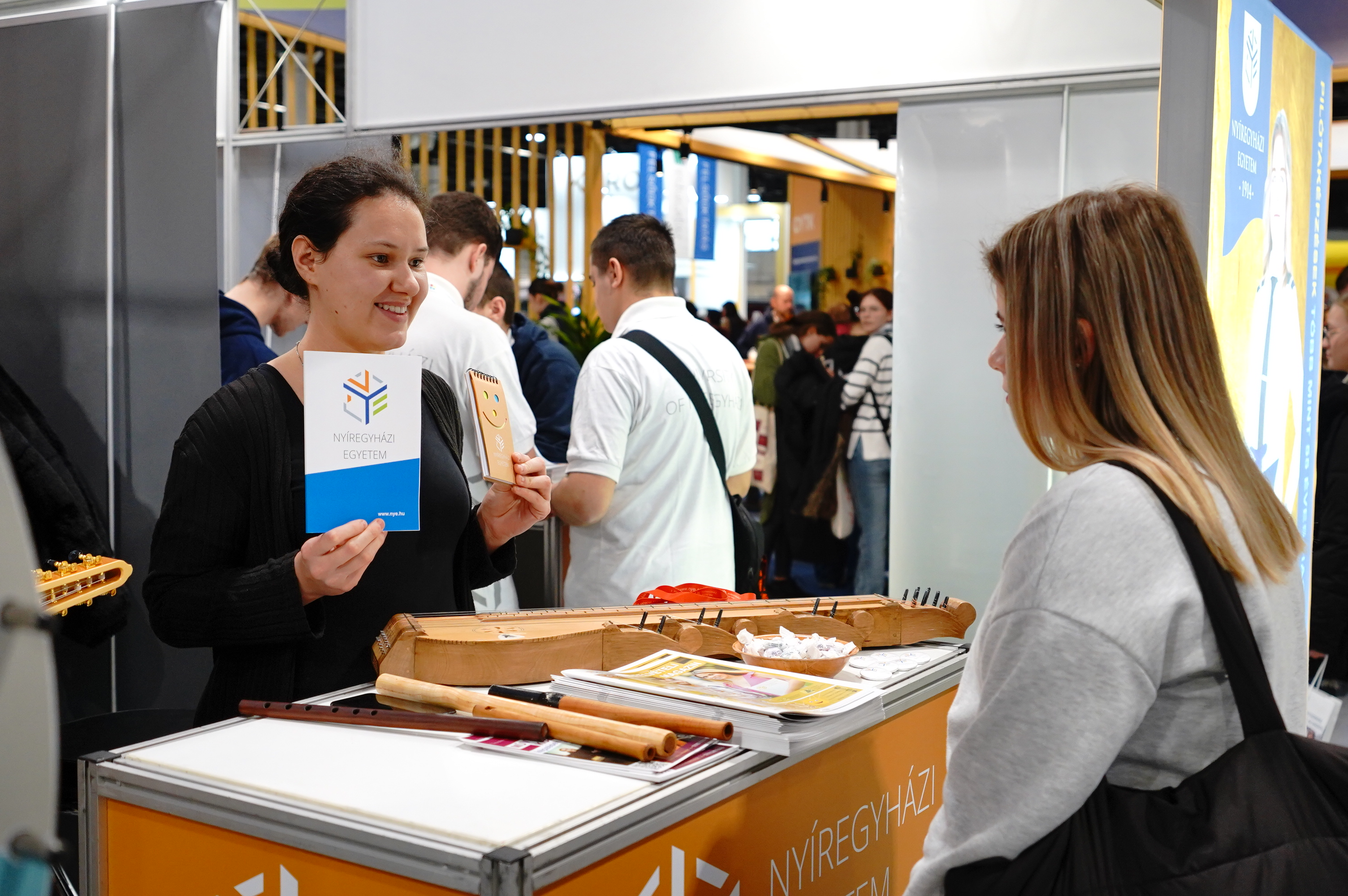 A Nyíregyházi Egyetem standján a hagyomány és az innováció egyszerre van jelen: a nagy múltú pedagógus- és pilótaképzéstől a műszaki, informatikai, gazdasági, agrár és művészetközvetítési területeken át egészen a mérnöki képzésekig teljes portfólióval várják az érdeklődőket. A pályaválasztást mesterséges intelligencián alapuló program segíti, míg az élményszerű bemutatkozásról VR-repülőgép-szimulátor és a LEGO® Education Studio gondoskodik, ahol kreatív foglalkozások, ajándékok és értékes nyeremények is várják a látogatókat. A nemzetközi szakkiállításon idén is a nagyszínpaddal szemben mutatkozik be az intézmény, ezúttal az AG07-es standnál.