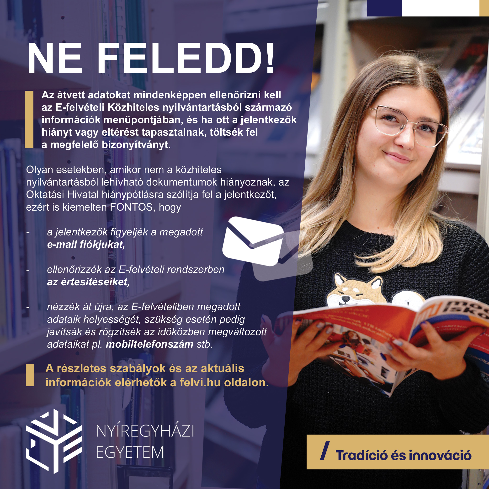 - nézzék át újra, az E-felvételiben megadott adataik helyességét, szükség esetén pedig javítsák és rögzítsék az időközben megváltozott adataikat pl. mobiltelefonszám stb.
