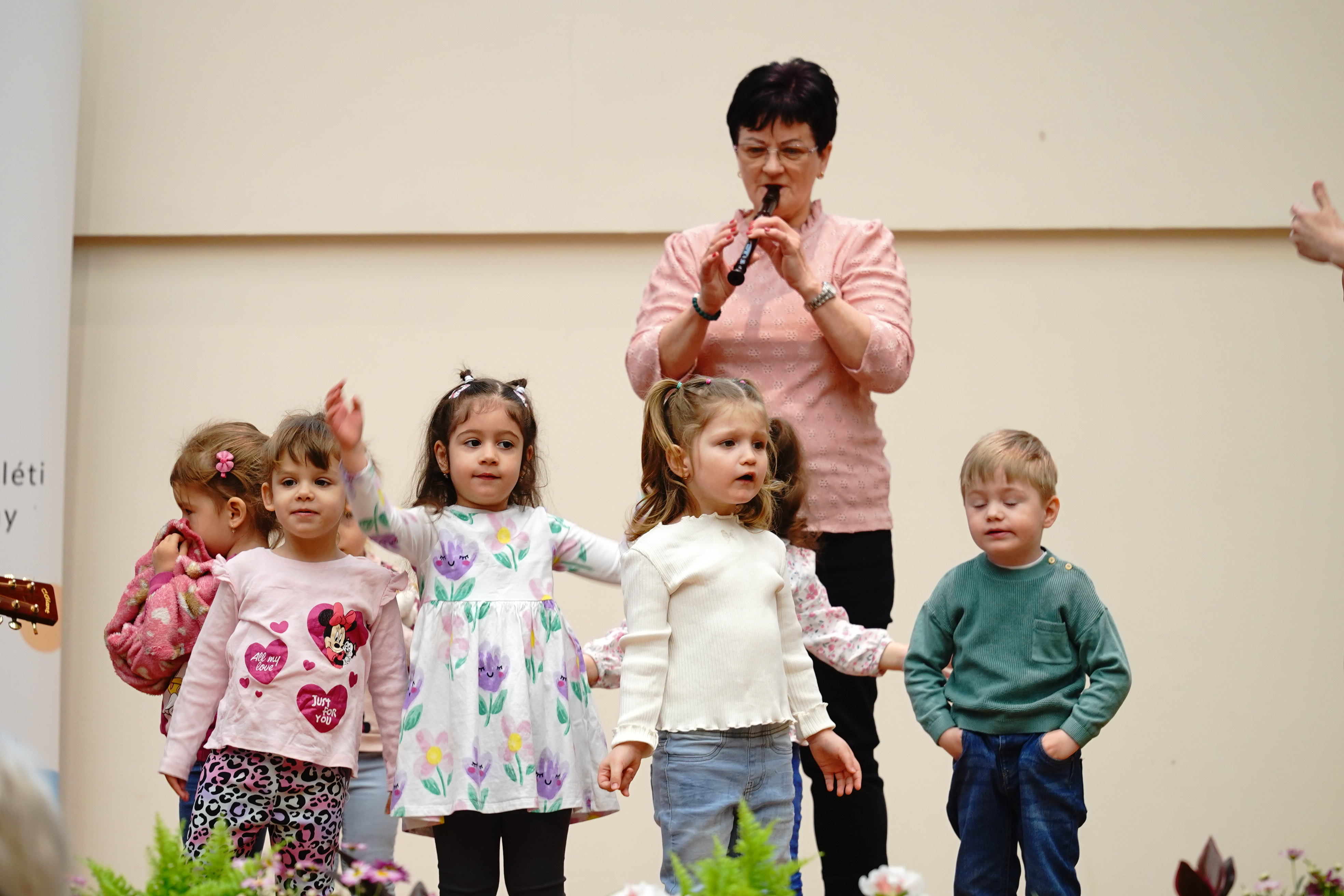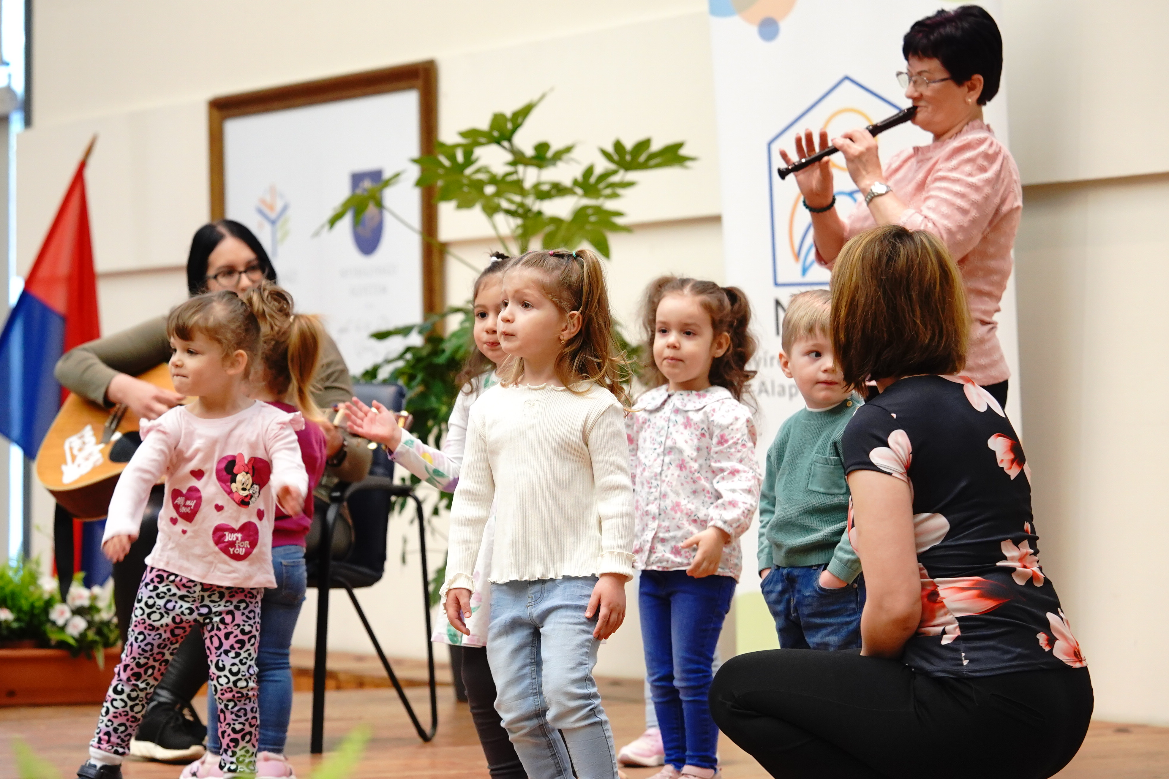 A szakmai nap az Aprajafalva Bölcsőde Mókuska csoportjának műsorával kezdődött. A gyermekek előadása a bölcsődei művészeti nevelés gyakorlatába engedett betekintést, egyben hangulatos nyitányt adott az eseménynek.