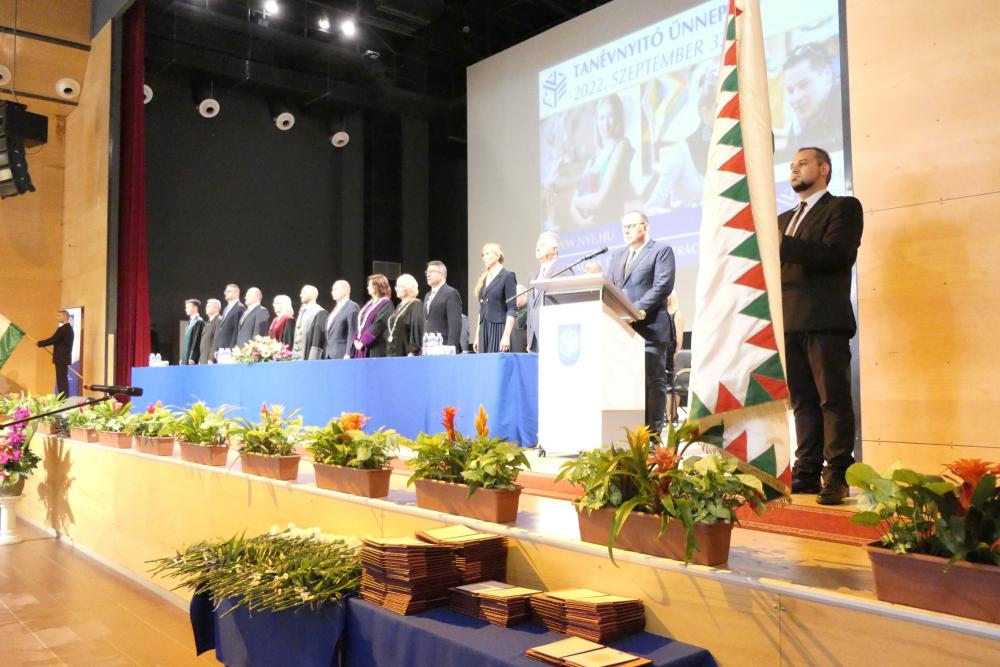 2022. szeptember 3-án, szombaton, a hagyományoknak megfelelően a Nyíregyházi Egyetem Kodály termében tartották az intézmény tanévnyitóját. Az ünnepségen esküt tettek az első éves hallgatók, akiket a felsőoktatási intézmény rektorhelyettese egyetemi, Nyíregyháza város alpolgármestere jelképesen nyíregyházi polgárokká fogadott. Jubileumi diplomát vehettek át az 50, 60, 65, 70 illetve 75 éve végzett egykori hallgatók, illetve köszöntötték az egyetem új oktatóit, új főiskolai tanárait, valamint az idei tanévben nemzeti felsőoktatási ösztöndíjat elnyert hallgatókat. Az eseményen köszöntőt mondott Dr. Szabó Tünde és Dr. Vinnai Győző országgyűlési képviselők, Dr. Mészáros József, az intézményt fenntartó alapítvány kuratóriumának elnöke, beszédet mondott dr. János István általános rektorhelyettes. A programon művészeti műsorral kedveskedtek a vendégeknek, fellépett Gulácsi Tamás, a Móricz Zsigmond Színház színművésze.
