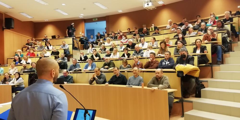 A tudományos teljesítmény mérésére fókuszáló előadásában egy rövid történeti áttekintés után bemutatta, hogy miként mérhető a tudományos tevékenység, illetve annak hatása. Bemutatta a különféle tudománymetriai szintek (folyóirat-metria, közlemény-metria, szerző-metria) sajátosságait, valamint a mérés következményeit, hátulütőit és mellékhatásait is. Előadásának „hol és hogyan publikáljak?” szakaszában ismertette az ún. Q1-Q4, D1 és Scimago folyóirat besorolásokat, a nyílt hozzáférésű („open access”) publikációk előnyeit és hátrányait, illetve a publikációs színtér szereplőit, paramétereit (Scopus, Web of Science, Pub Med, Publons, Google Tudós, Orcid, DOI, stb.). A rendezvényt az egyetem Tudományos Tanácsa kezdeményezte és szervezte.